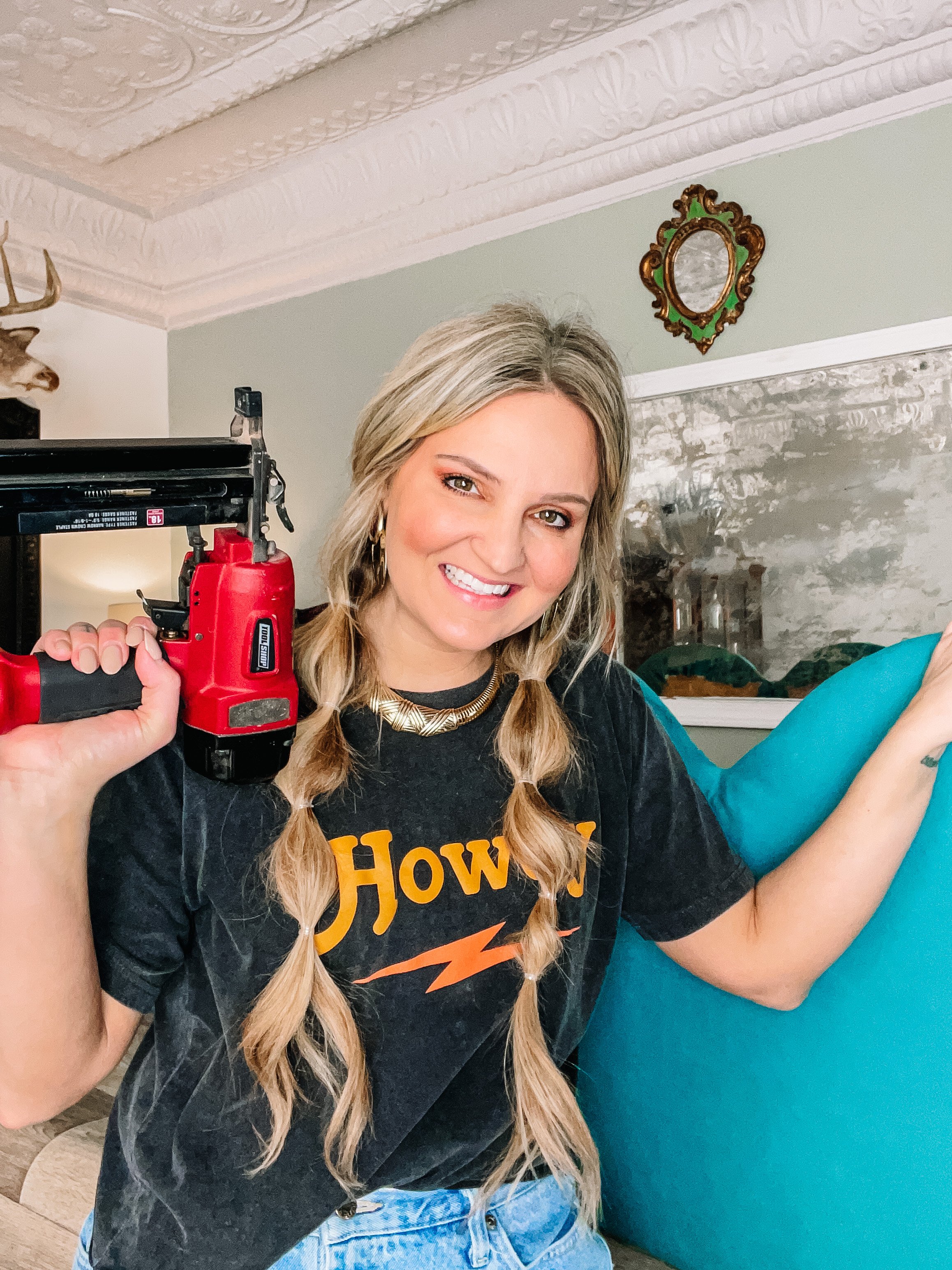 Custom upholstery is expensive and was not in the budget, so a DIY was the move. We wanted there to be something soft for people to lean against. Previously the space had rectangle backs, but I wanted to create a more interesting shape. The building has arched windows in the front, so that inspired the scallops. I also incorporated scallop shape in one of the tiles and the back bar header.