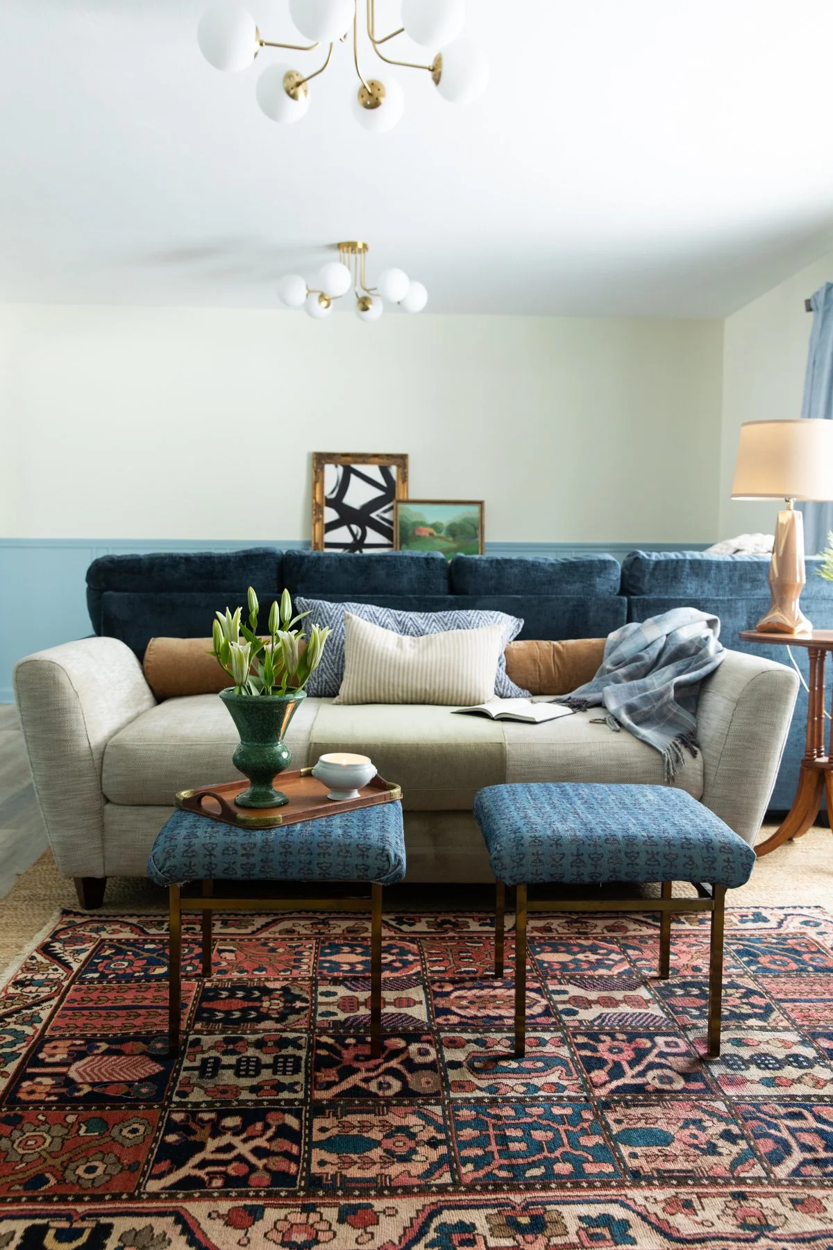 I roped in my husband to help with the work, hired some additional hands, and shared the project on social media to help raise funds for furnishings and décor. A huge THANK YOU to everyone who donated! Because of your generosity, we were able to purchase so many wonderful pieces for the space—including a brand-new sectional.