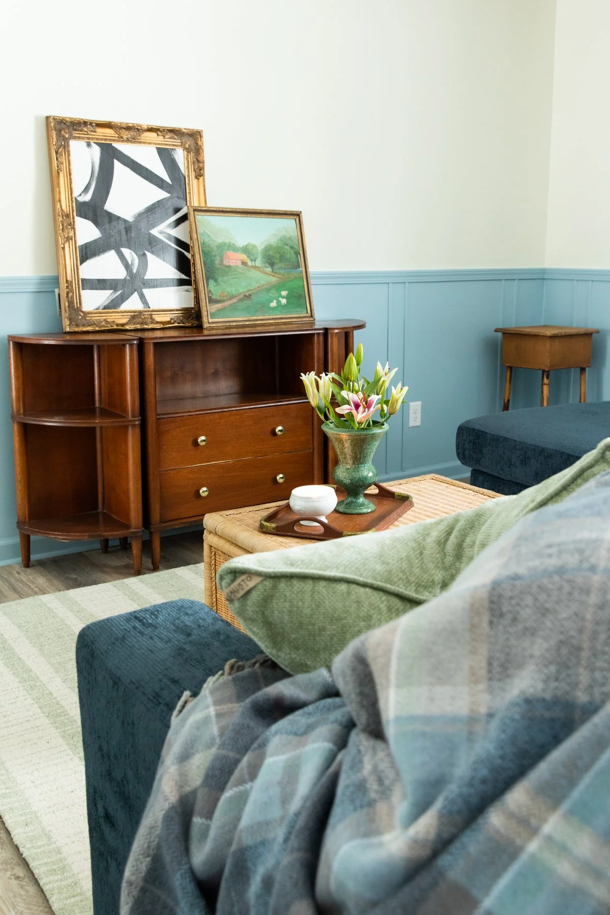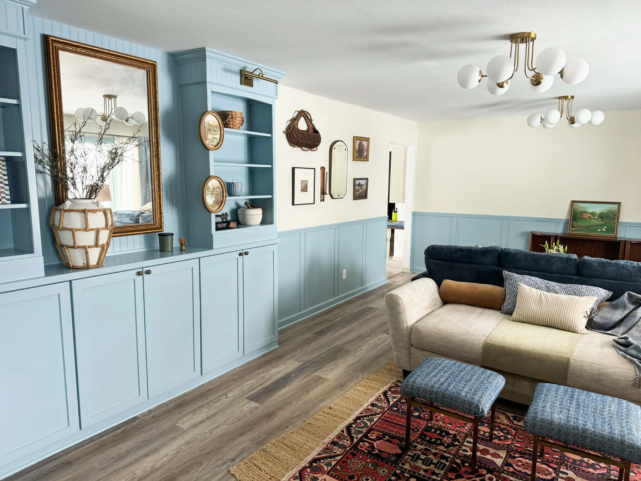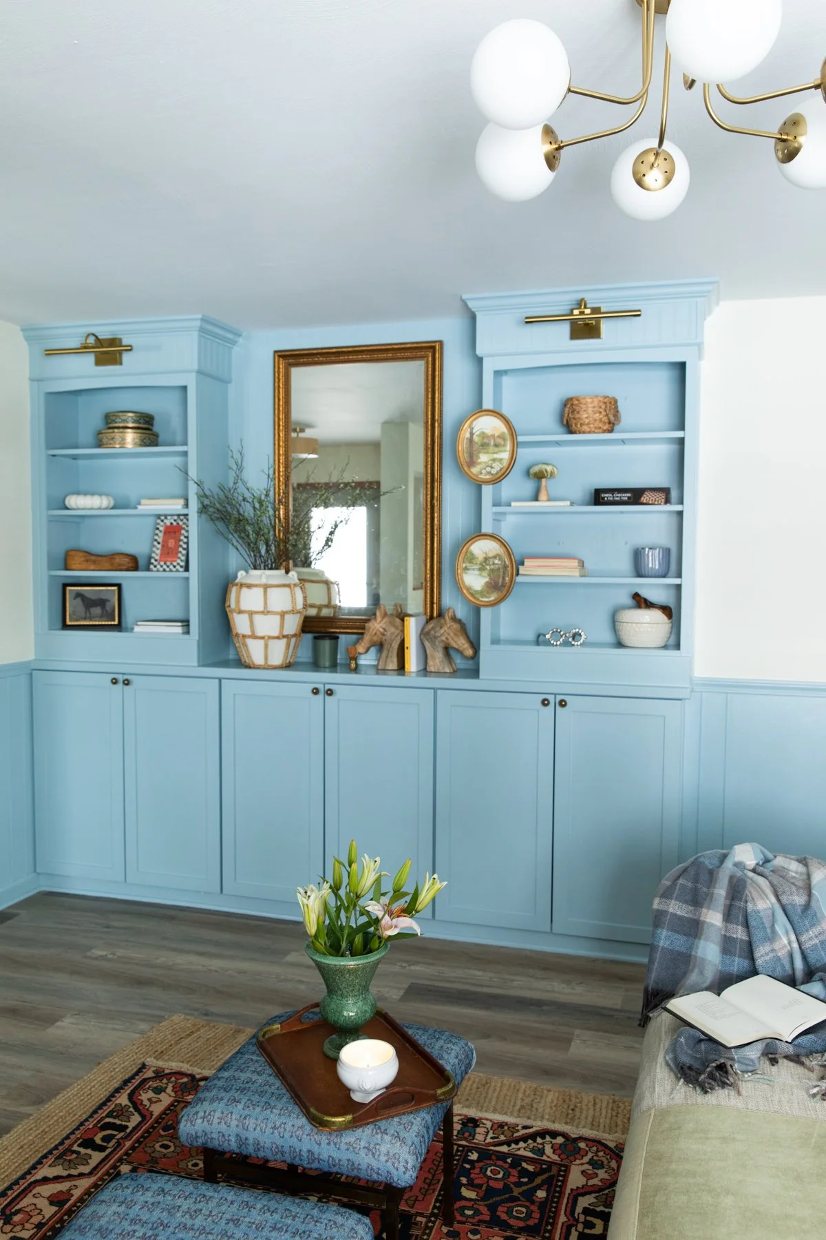 One of the biggest transformations in this room was the addition of the built-ins—there were none here before. Adding them created much-needed storage, visual structure, and a sense of intention that truly anchors the space.